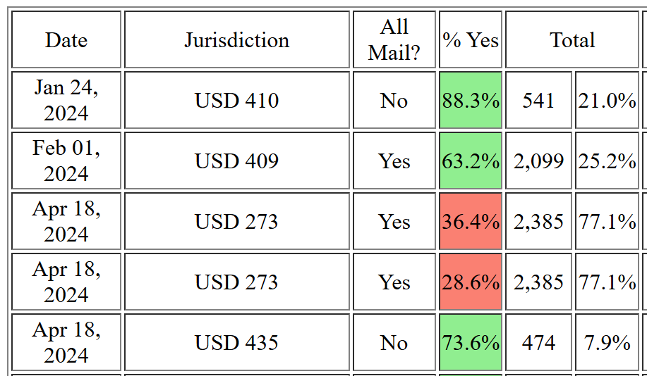Some statistics on who voted in special bond and sales tax elections over the past couple years.